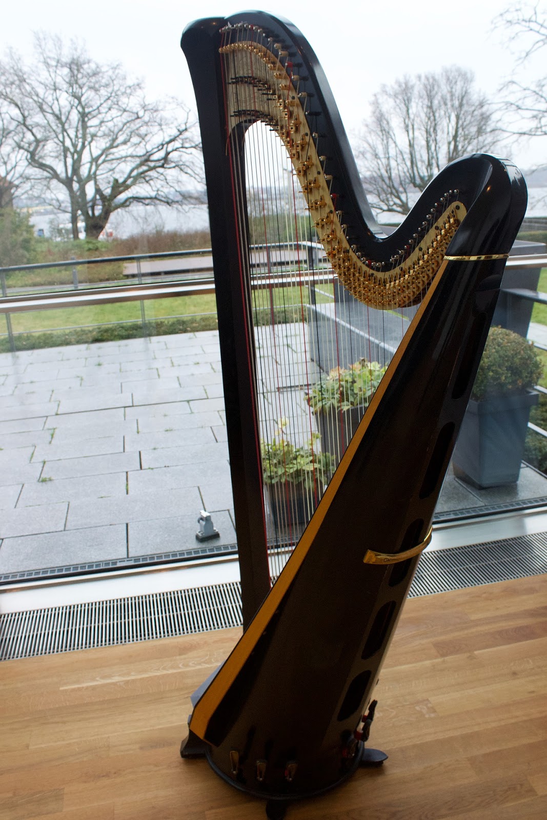 Harps without the fore-pillar are strung at comparatively low voltage, resulting in a lower pitch than the plate harps. The current double-acting pedal harp blends the fundamental form and sound of ancient harps with a sophisticated system to produce a complete chromatic performance.